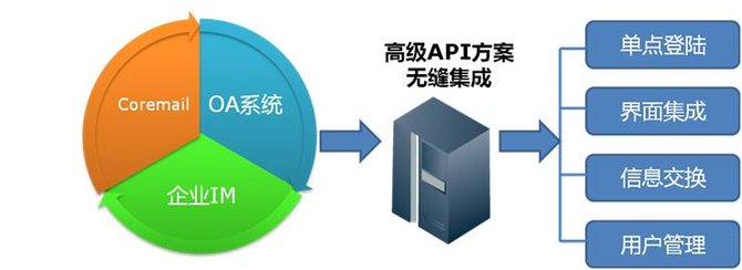 Coremail统一沟通整合方案贴合现代金融行业信息化需求,支持与业内主流OA系统及IM系统进行无缝整合,从而避免信息孤岛,在本次整合中,针对浙商银行的需求,实现了如下集成功能: