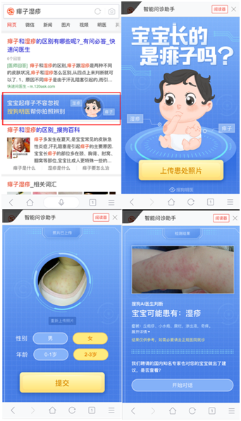 (图:搜狗明医“湿疹痱子识别”功能利用AI技术判断宝宝可能患有湿疹)