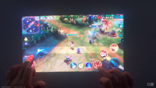 根据此前一数科技曝光的消息,Dock外形跟音箱大小相仿,纯黑的设计颇具科技感,可以当蓝牙音箱使用,配合Cast Ⅱ使用,能够实现免费接打电话和语音外放。同时,Dock具备基本的投影虚拟显示功能,这款“无屏pad”采用基于激光MEMS的虚拟显示屏技术和超短焦集成光路设计,能够将桌面墙壁等变成可以可虚拟触控和交互的的15英寸虚拟大屏,比ipad屏幕更大,并且屏幕大小可以从10寸到40寸任意切换,在暗光和室内正常光源下显示清晰度和色彩饱和度都相当不错。而作为一款全新的产品,虚拟屏幕触控输入无疑成为Dock最大的亮点。Dock的直播首秀选择了对触控操作灵敏度要求极高的触控游戏王者荣耀,虽然直播中使用的是一台内测使用工程机,但其操作流畅度还是超出了很多网友的想象,配合王者荣耀大神的神级操作,carry全场毫无压力,点击、双击、长按、滑动、输入等诸多手势操作畅通无阻,触控反应灵敏度与物理触摸屏无异。