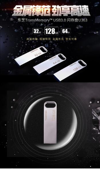 东芝TransMemory USB3.0 U363闪存盘有三种容量可供用户选择,分别是32GB,64GB和128GB。用户可以根据自己的需求来选择合适容量的U盘。