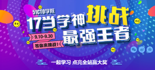 活动介绍:“17当学神挑战最强王者”点亮全站是51CTO学院主办的,9.10-9.30活动期间:
