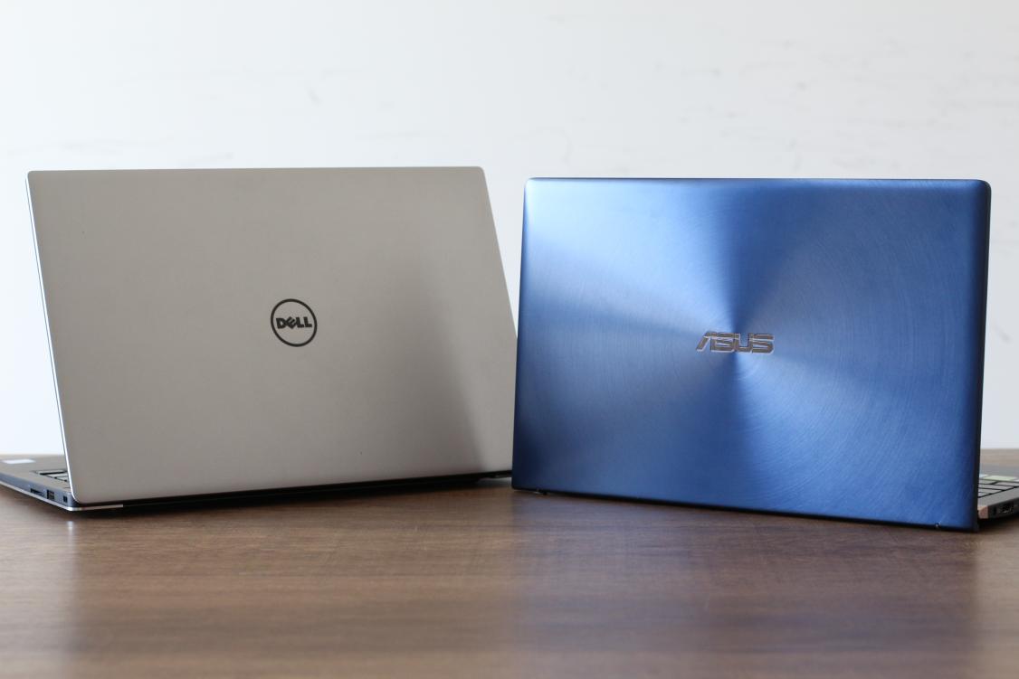 95%屏占比全面屏是华硕灵耀Deluxe13最大的特点,它至窄处仅2.8mm 的设计创造了95%高屏占比的成绩,并且在开启同时已经给人一种扑面而来的感觉,视觉受到屏幕边框的影响更是微乎其微,让人很容易沉浸其中。同时它也位列笔记本中的屏占比榜眼,一举超过了珠玉在前的戴尔XPS,下图为戴尔XPS 及华硕灵耀Deluxe13对比实拍,谁能更胜一筹,答案自见分晓。