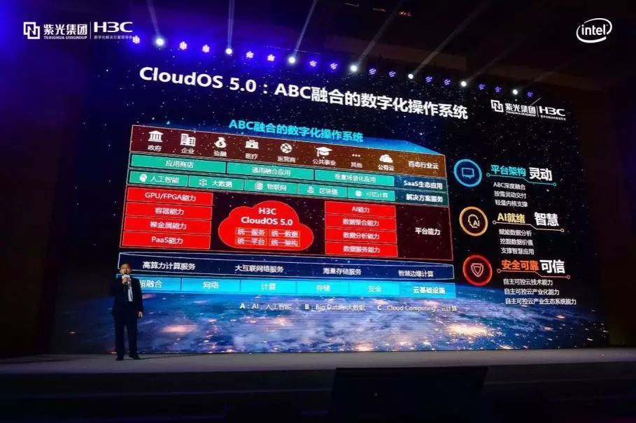 同期发布的H3C CloudOS 5.0数字化操作系统,作为ABC融合的全栈式云平台,实现了对数据中心的统一管理与智能调度,帮助用户在复杂多样的IT环境中快速实现应用的云化,提高企业数字化智能化转型的能力。配合新华三提供的从规划、设计、实施、迁移、到交付、运维、运营的全生命周期云服务,进一步提高企业的数字化和智能化水平。