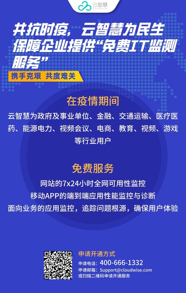 云智慧将密切关注时疫发展,若有其他变动将通过云智慧官微第一时间进行公布。再次感谢您对云智慧的支持,我们也将随时恭候您的垂询,一如既往的提供可信赖的智能业务运维服务!