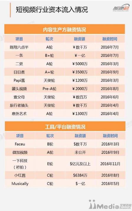 资本市场对短视频头部内容品牌也进行了千万起至上亿元的疯狂投资,下图为艾媒咨询统计的近一年来拿到投资的短视频内容品牌。