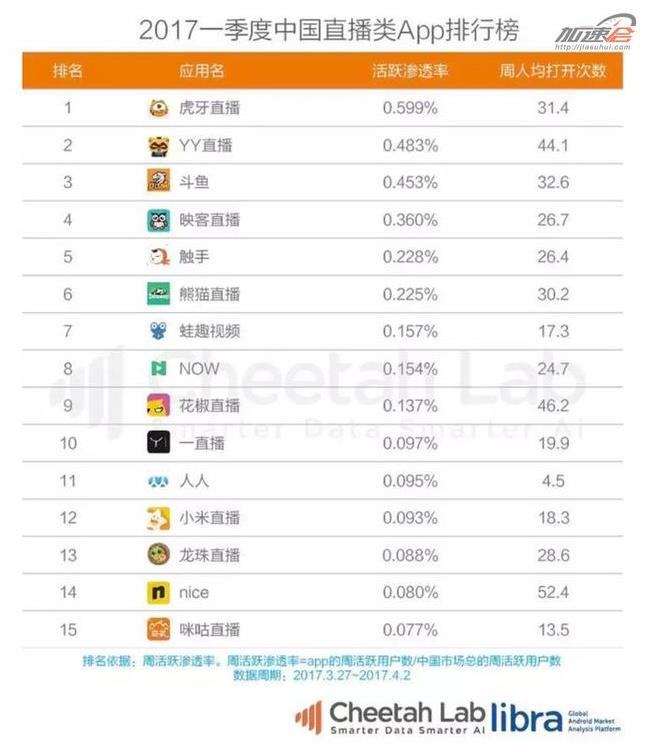 根据CNNIC第39次报告,截止2016年12月,中国网络直播用户规模已达3.44亿,占网民总体的47.1%。其中游戏直播的用户使用率增幅最高。下面我们来盘点下国内在线直播行业的格局。