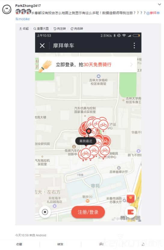 长春用户称摩拜数据造假诱导注册交押金
