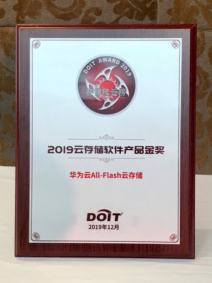 华为云All-Flash云存储荣获“2019云存储软件产品金奖”