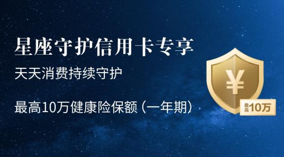 据了解,星座守护信用卡除了常规首刷礼外,业内领先推出“守护宝”健康权益。主卡持卡人有机会领取一年期健康险保费,首次开卡即可领5000元保额,活动期间每日消费刮奖最高同样可领5000元保额,最高可累计保额10万元,可保障主卡持卡人多达65种重大疾病。