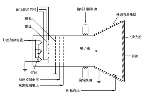 事实上,一百多年来,越来越多的科技重心被放到了屏幕显示上,让屏幕显示地更清晰、色彩更艳丽。首先,需要解决的是画面显示问题。电视最早的阴极射线管被成功改造成电子枪,它能精确地敲击在屏幕的荧光粉上,从而显示出或明或暗的小点,像是马赛克贴画墙面一样,组合成了最早的黑白屏幕画面。其次,让屏幕显示出色彩很重要。在一支电子枪的基础上,若是要实现彩色,就需要三支电子枪来精确点亮能发出三原色的荧光粉。利用这个原理,英国人贝尔德在1946年把黑白屏幕变成了彩色。