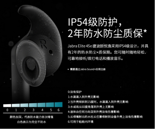 如果你是耳机损坏的重度患者,其实归根到底就是没有防尘防水的功能导致的, Elite 45e采用IP54级防水防尘的设计,既不用担心水浸入耳机,也不用担心生活中的尘土,终结频繁换耳机的问题,从此自在聆听,无所顾忌。