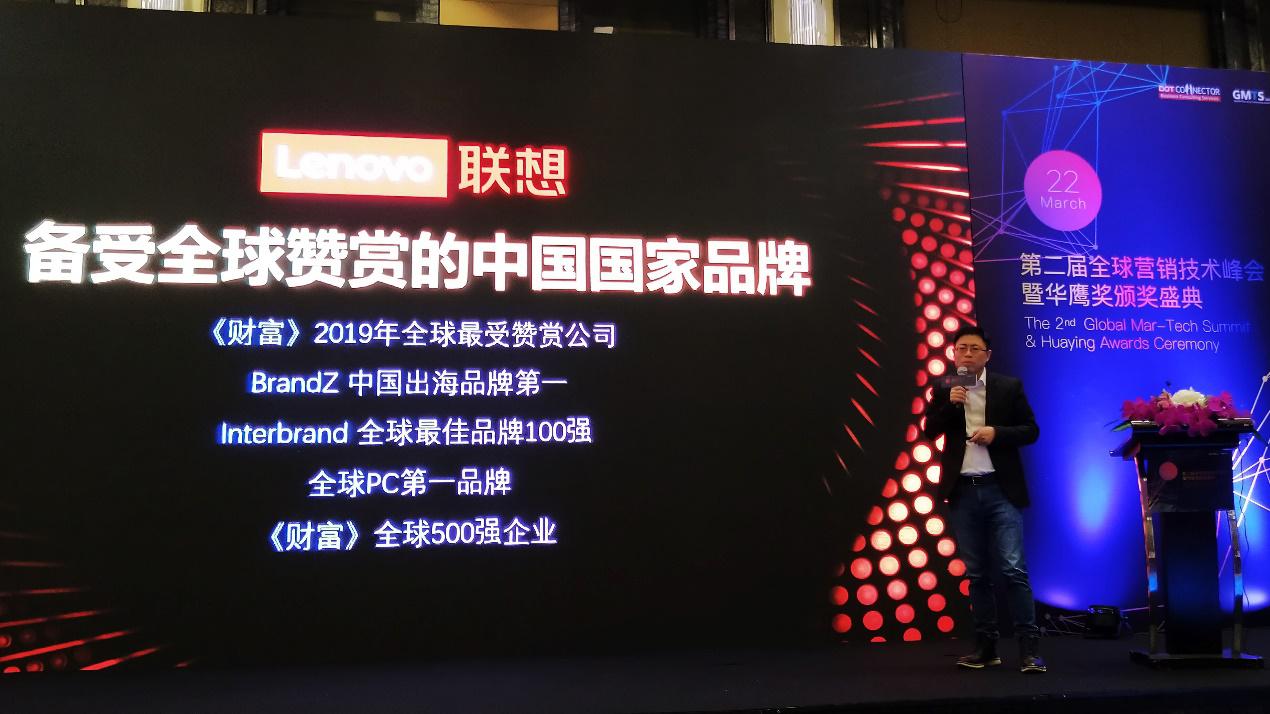 3月21日至22日期间,第二届全球营销技术峰会暨华鹰奖颁奖盛典正式召开,联想集团副总裁、中国区首席市场官王传东代表联想受邀出席。活动现场,王传东一反联想低调做派,高调表示联想是一家备受全球赞赏的中国国家品牌,并列举了联想在过去一年里所取得的多项全球性奖项和成绩。