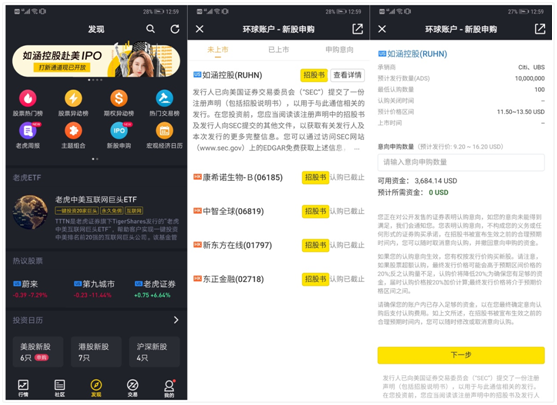 (图:老虎证券开启如涵控股打新通道)