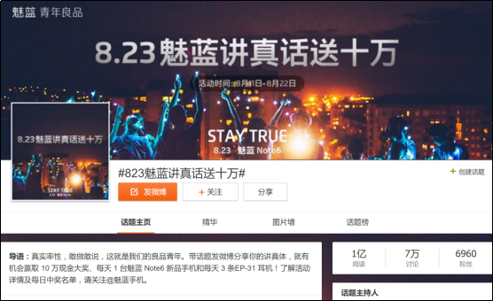 前天,魅蓝品牌宣布在微博开启#823魅蓝讲真话送十万#活动,邀请用户分享自己的讲真体,赢取10万元现金大奖。在短短两天时间内,这一话题在微博之中火速升温,1亿的阅读量就是其成绩的证明。可能是由于看到了活动良好的传播效果,众多品牌也放出了讲真体海报。