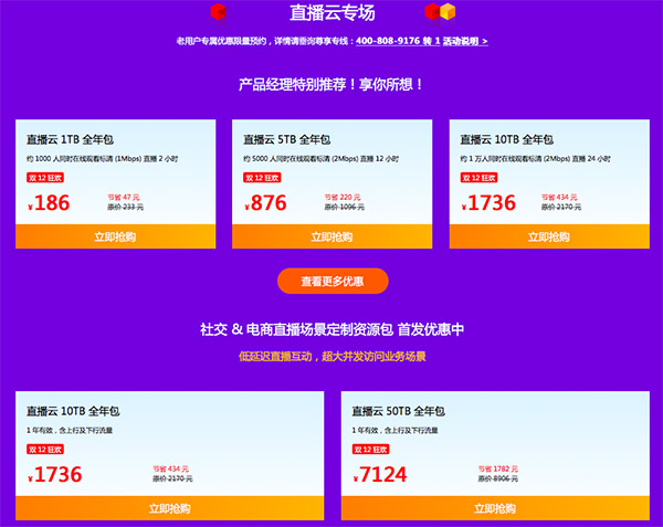 更多直播云专场详细活动规则及购买流程可登陆七牛云官网进行查看。