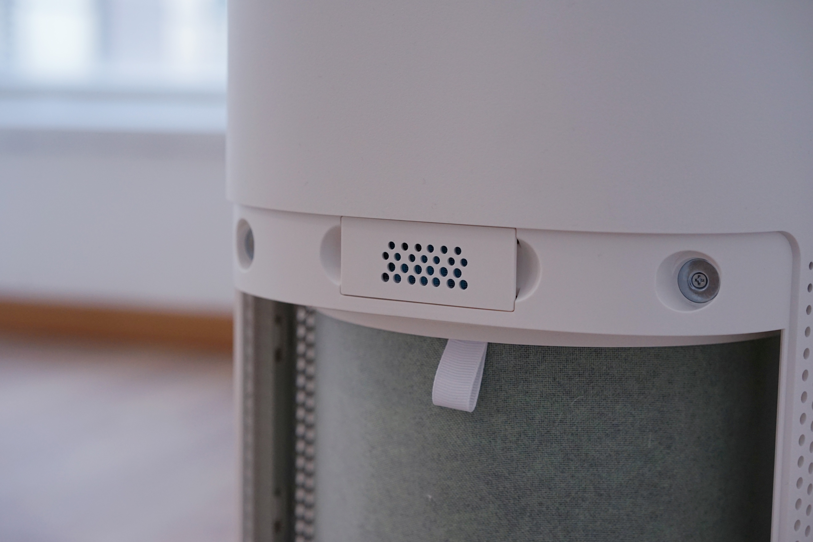 当我们将滤芯保护罩拆下时能看到一个孔状装置,其实这是一枚高精度的PM2.5激光传感。也正是有了它,我们才能轻松看到房间的PM2.5的数值,空气质量一目了然。