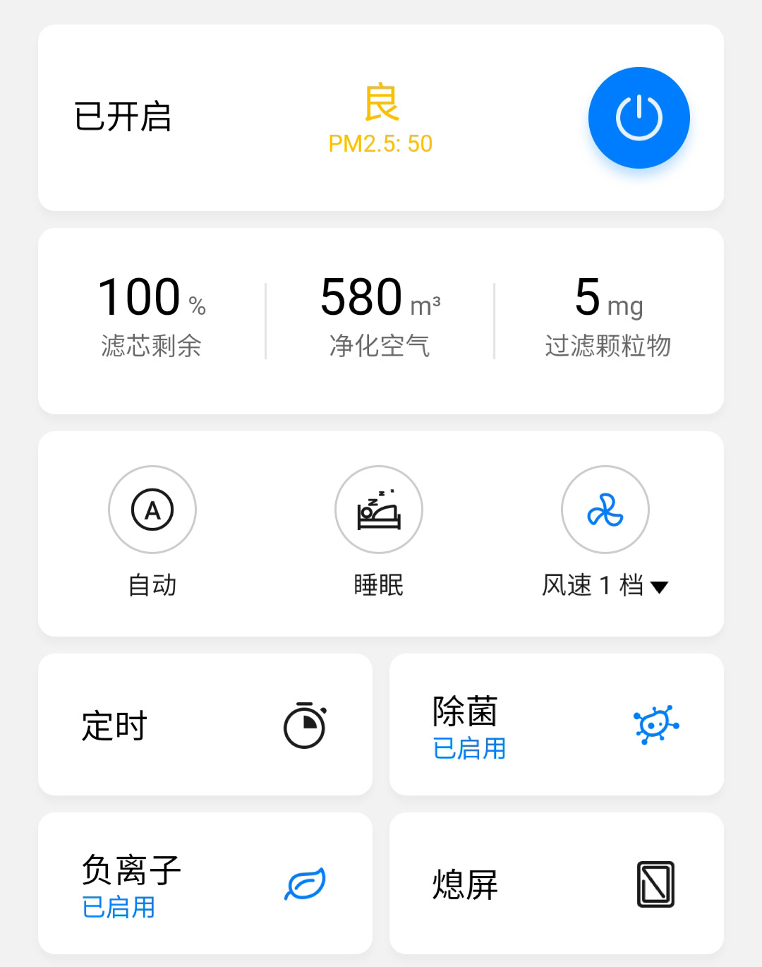 实际体验方面,很多地方都能感觉到720全效空气净化器C400的人性化,给足了我贴心感。先来说说720全效空气净化器C400的操作层面,不仅能进行手动操控之外,还能通过APP控制,连接720全效空气净化器C400之后我可以直接通过APP控制净化器的开关、风速几级等等,有时候躺在床上不想起身关净化器,直接手机控制即可。
