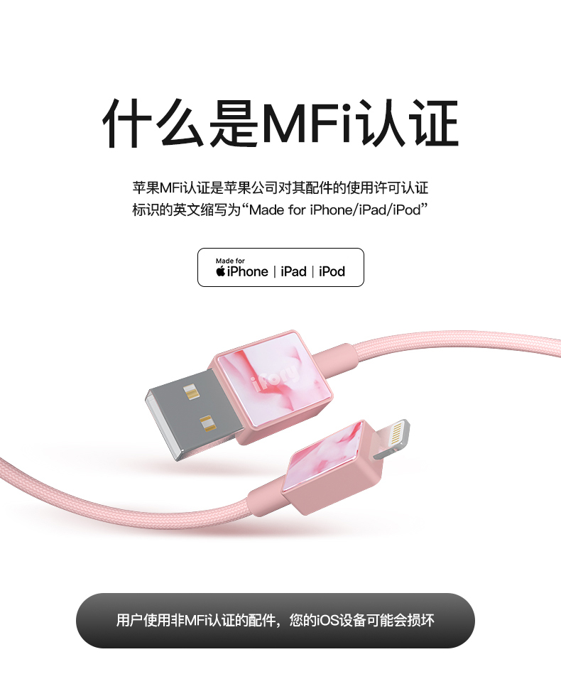 iFory苹果数据线系列拥有MFi官方认证,消费者可放心使用