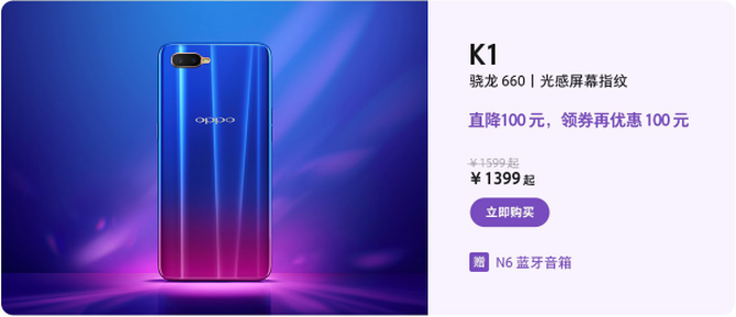 高颜值的OPPO K1性能强悍,匹配了不少旗舰机上才有的技术,“女王节”将这款诚意之作送给爱美的她正合适。活动期间,购机仅需1399元起,买到即赚到!