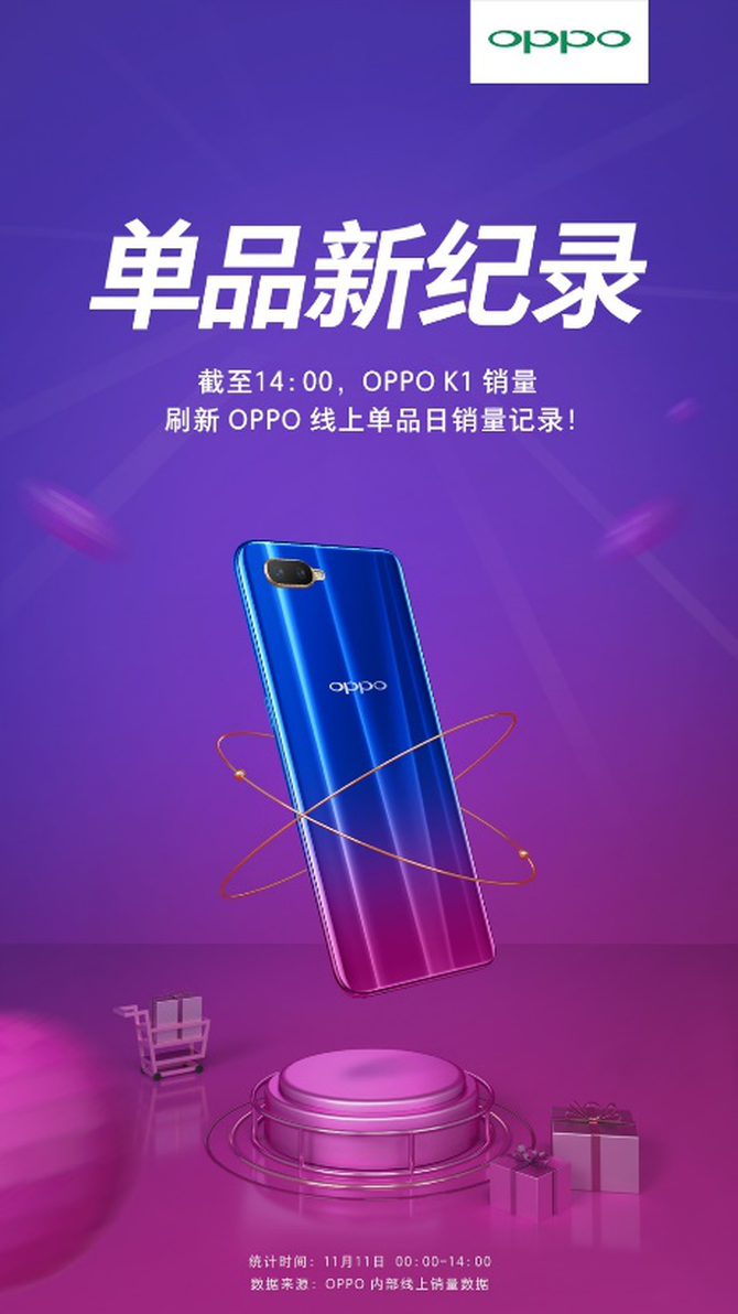 这款性能优越的高颜值K1一经推出就备受喜爱,10月19日正式开售一小时,在京东、天猫上稳居手机单品销量冠军,在苏宁上达成安卓手机单品销量&销售额冠军,且在各大电商平台均获得高分好评;双11期间,K1更是刷新了OPPO线上单品日销量记录。
