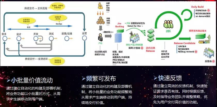 下面我来讲一下,我们为什么会上云以及上云对于我们的价值。现在比较流行一个新的研发概念叫DevOps,对于我们公司来说是技术板块研发文化的改变。从简单的做研发到业务梳理再到持续的开发,我们变成了一个比较小颗粒化的团队,每个团队负责自己的部分,然后在研发的基础上做不断地迭代。这个过程帮助我们在各个不同的业务当中起到共同开发框架的作用,使大家的融合交流能够起到更好的支撑作用,也能够做到小批量快速地迭代。