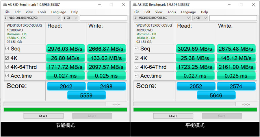 因此,我们的测试场景分为四种情况,分别在系统节能模式、系统平衡模式、系统高性能模式和开启游戏模式下进行跑分测速,通过对比来探索一下“外挂”的真正作用。