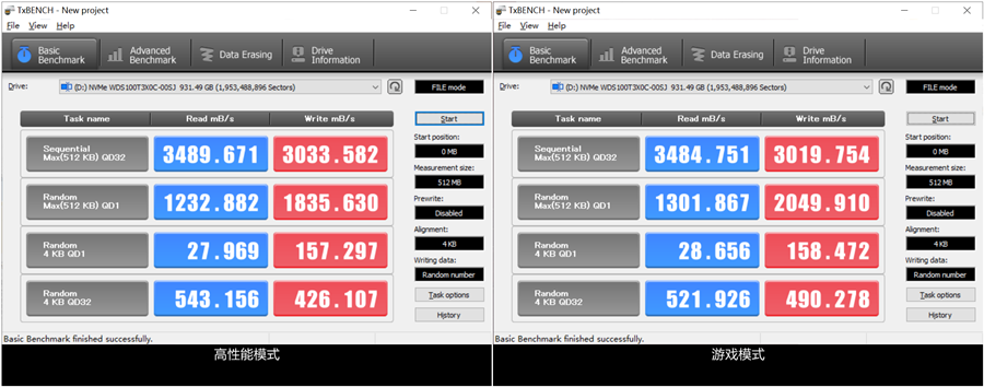 在TxBENCH测试也是如此,甚至游戏模式开启后4K的读取性能还会相应地下降,换取4K写入速度的提升,提升幅度约为8.8%。