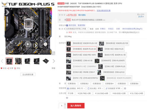 首先为大家力推超级性价比的华硕TUF B360M-PLUS GAMING S主板。该主板以强悍性能和精湛做工广受玩家赞誉,长期领先京东主板品类销量榜。现在京东到手价仅为679元!购买链接:https://item.jd.com/8074512.html