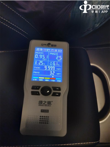 先把测量仪打开等3分钟后放进车里,从放进车里关闭门窗之后数值一直在狂跳直接跳到0.951mg。说实话没有这款测量仪的时候,我经常有事没事就摸上车里体验新车的快乐,相信很多的新车车友都会这样,但当我看到超10倍的甲醛我一点都不快乐,这车内简直就是一个毒气场。