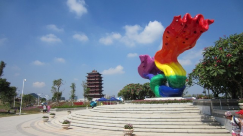 铜雕艺术品有30米高的铜像、广西铜鼓、金鸡、葫芦、铜龟、凤凰、铜灯及景泰蓝百色龙。牌楼、单体结构、华表高度谓全国之最;精雕麒麟、凤凰、景泰蓝工艺五龙托葫芦等高大居世界之冠;壁雕飞龙,精雕细琢堪称世界一绝;整座建筑雄伟壮观,气势磅礴。在这里观赏雕刻作品,就得花上一天的时间,静静的感受艺术与美的融合。