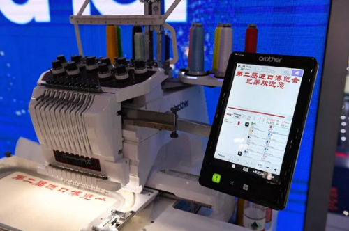 Brother商用绣花机秀出“第二届进口博览会兄弟欢迎您”字样