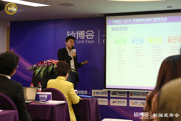 中国锁博会LockExpo 组委会总经理、乐智网创始人朱永康在新闻发布会上详细介绍了中国锁博会LockExpo的具体情况和展会亮点。本届中国锁博会将以市场为导向,以采购为中心,以加快锁具行业发展、推动传统锁具智能化升级为目的,聚焦全球锁具产品创新,打造综合性、专业性、区域性、国际性、完美结合的专业智能锁盛会。在参展商方面,将覆盖方案提供商、系统集成商、产品供应商、服务运营商以及专业采购商,在不同细分领域进行全新布局,实现家庭智能化的居住环境的突破。2018年展会上,国际采购商已突破3000人,2019中国锁博会 LockExpo将在已有展商品牌的基础上加大海外宣传力度,与国外知名机构合作,为参展企业走出国门,提供有效对接的专业展览平台,打造一个全生态的智能门锁展会。