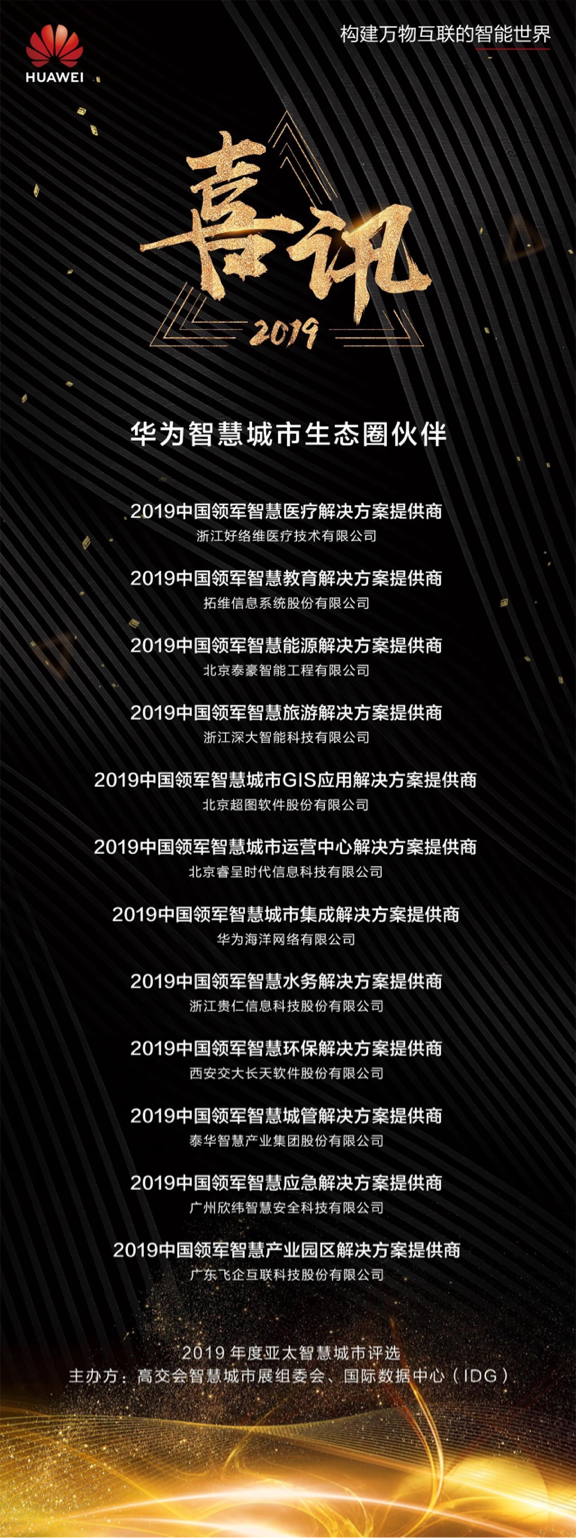 与此同时,华为客户及伙伴也获得15项大奖,其中,湖南益阳等四个城市荣获“2019中国领军智慧城市”,华为云同舟共济战略合作伙伴拓维教育信息系统股份有限公司荣获“2019中国智慧教育解决方案提供商”,华为云合作伙伴浙江深大智能科技有限公司荣获“2019中国领军智慧旅游解决方案提供商”。