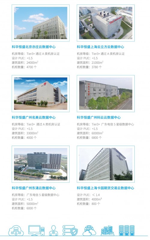 科华恒盛拥有超过10年的云数据中心建设运营经验,目前在北上广已建设、运营6大云数据中心,在全国10多个城市运营20多个数据中心,拥有机柜数量超过2.5万架,数据中心总建筑面积超过20万平方米,形成华北、华东、华南、西南四大云数据中心集群。根据权威调研机构赛迪顾问报告显示,2018年度科华恒盛中国模块化数据中心国产品牌市场占有率第一。