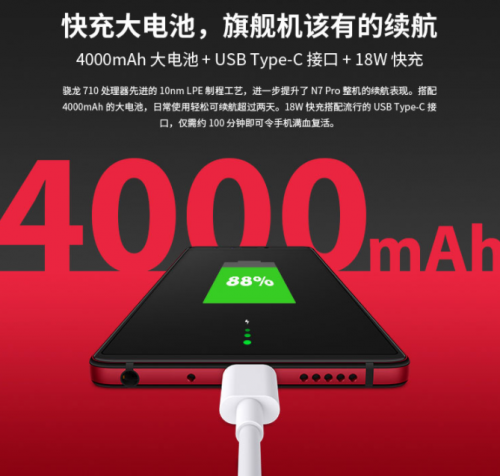 4000mAh容量电池,在当前已经发布的骁龙710机型中非常罕见,是唯一一款,正是这一特性,使得360手机N7 Pro自发布后便获得了“710家族续航怪兽”的称号。