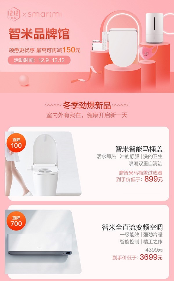 在双12期间,智米智能马桶盖将会直降至899元,领到有品优惠券的用户将会最高再减50元。同时活动期间还将赠送一枚价值99元的过滤器,方便用户更换。