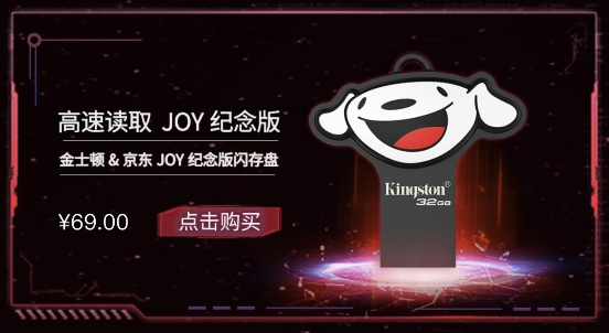 金士顿京东JOY联名款U盘驾到,金士顿高品质存储产品搭配精致的京东JOY卡通形像,高效率的USB 3.1速度,读写速度快。全金属结构,精致又显小巧。可以说,它既是偶像派,也是实力派。