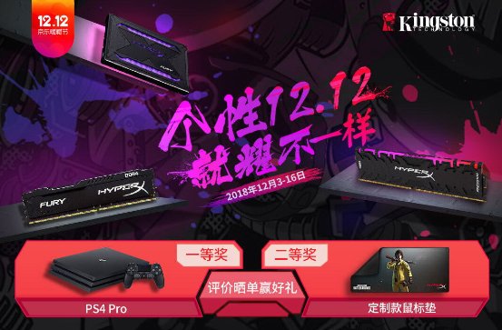 爆品特价之外还有贯穿始终的晒单活动,12月3-16日,凡购买京东自营金士顿或HyperX产品(仅限京东发货产品)。在12月24日23:59:59前,将京东ID、产品照片及有效订单信息截图,发送至金士顿官方微信公众号(Kingston1987),将从符合条件的用户中抽取大奖豪礼!一等奖(1名),PS4 Pro游戏机一台; 二等奖(50名),HyperX定制款大号鼠标垫1个,具体以京东促销页面中的活动规则为准。