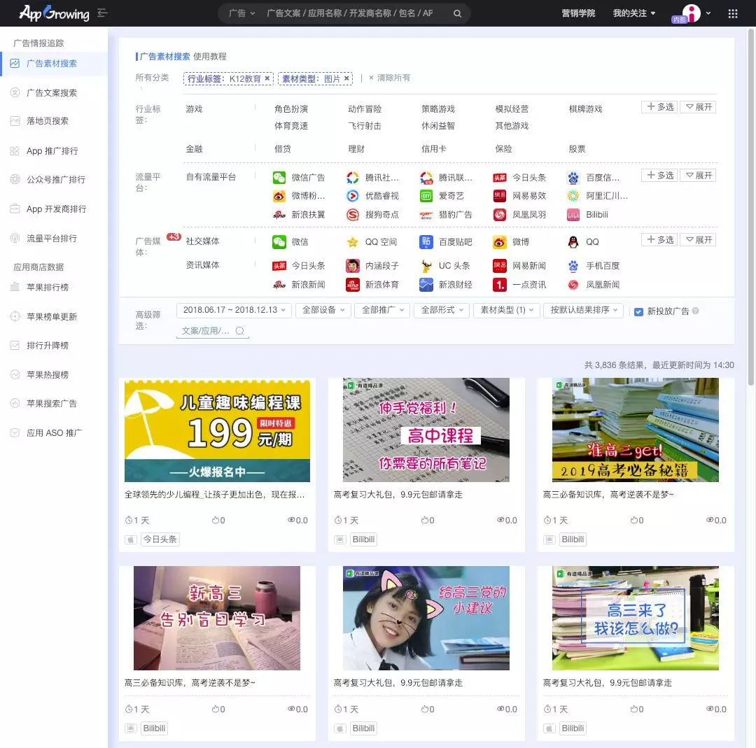 此外,有米自有数据产品App Growing还可针对行业内广告进行追踪与解析,结合DMP挖掘用户行为,获取更多专属人群包进行投放。