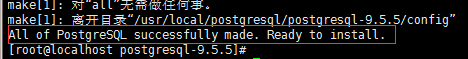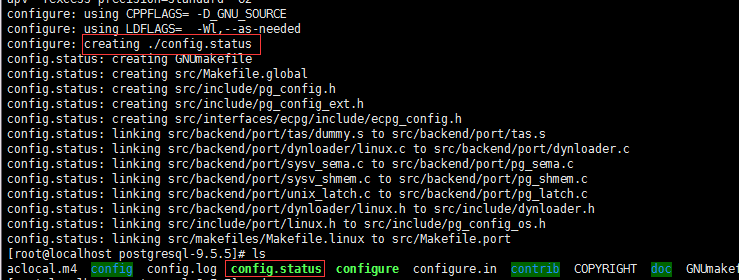 安装完成后再次编译postgresql,并没有再报error,可以看到提示创建了config.status配置文件: