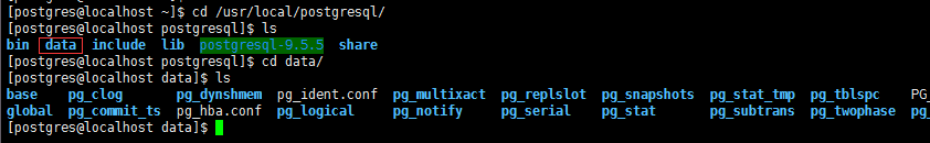 同时在postgresql的目录可以看到生成的数据目录data以及该目录的相关数据和配置文件: