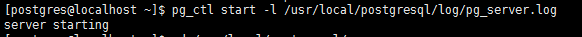 最后运行pg_ctl start -l /usr/local/postgresql/log/pg_server.log即可启动数据库,看到如下提示就说明启动成功了: