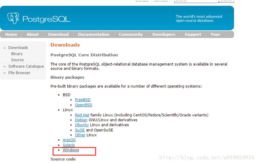 PostgreSQL官网–>Download–>Windows 64位,如图所示: