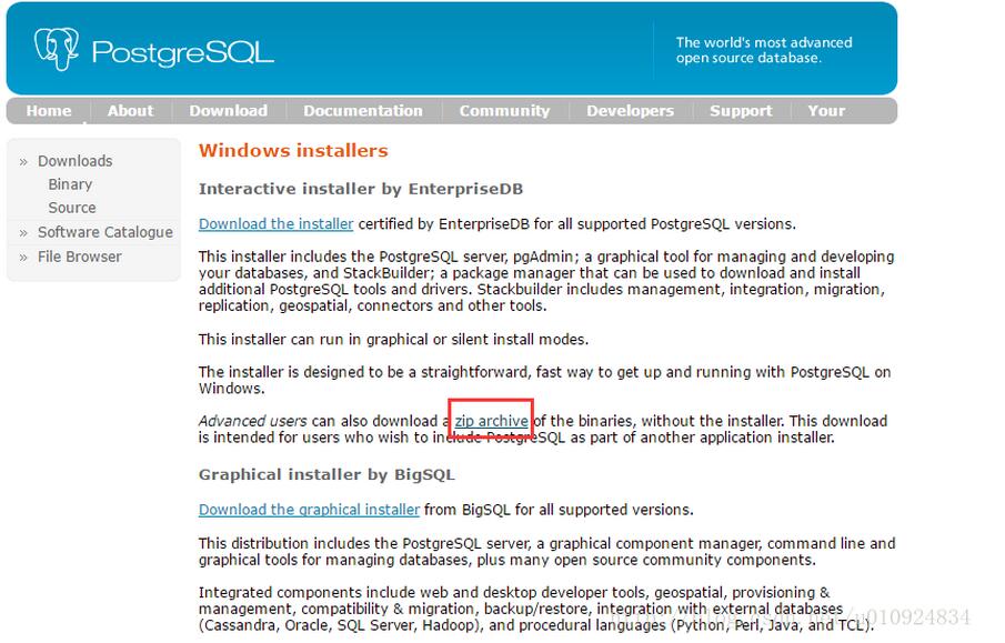 1.下载PostgreSQL的二进制安装文件。