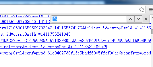 2:同时按下键盘的ctrl+f键 打开查找对话窗口右上角如图,输入视频文件后缀名,一般为.flv .swf .avi .wmv .rmvb几种,如图以.flv为例