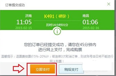 最后选择乘车人,然后提交订单,并支付,点击支付后,会跳转到12306网站的支付界面,直接点击下面的网上支付,然后选择使用网银或者支付宝付款;