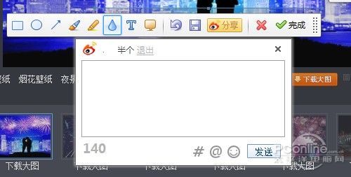 截图之后,可以马上发送新浪微博(暂时不支持其他微博)。