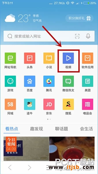 1、打开QQ浏览器app,点击“视频”按钮;