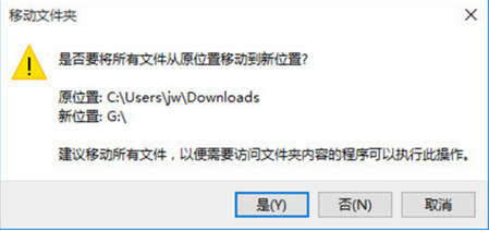 6、点击了“确定”后,这时会弹出“移动文件夹”窗口,并且提示“是否将原有文件夹移动到新位置”,点击“是”即可。经过以上步骤操作,edge浏览器下载的文件存储就将顺利移到新的文件夹中。