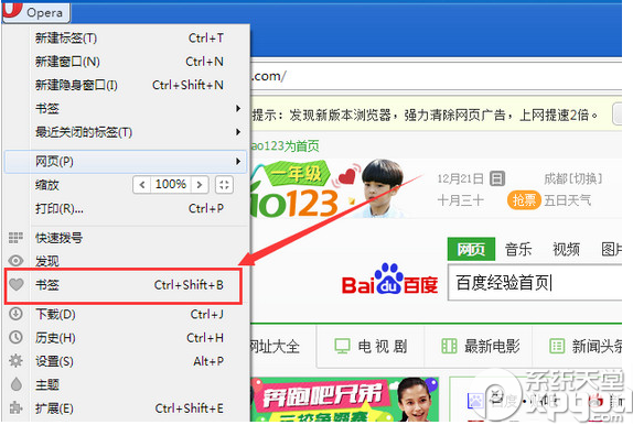 5、其实这个时候,我们已经将网页收藏到刚才的文件夹中了,我们可以点击左上角的菜单,如图示